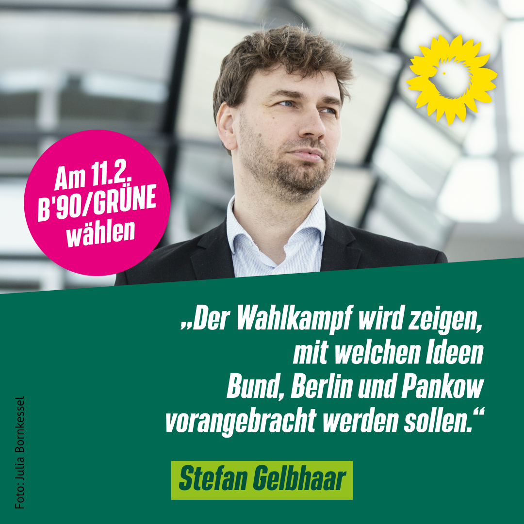 Stefan Gelbhaar sagt dazu: „Das Direktmandat 2021 hat mir Rückenwind gegeben. Daran möchte ich anknüpfen. Es gilt, für die Wahl zu mobilisieren, die Wahlbeteiligung wird der entscheidende Faktor sein. Es lohnt, wählen zu gehen: Es geht um ein Zeichen für sozial gerechte und nachhaltige Politik, für Klimaschutz und Verkehrswende, für bezahlbaren Wohnraum und gute Arbeitsbedingungen. Es geht in Pankow auch um ein Signal für vielfältige und inklusive, nachhaltige und soziale Gesellschaft. Der Wahlkampf wird zeigen, mit welchen Ideen Bund, Berlin und Pankow vorangebracht werden sollen.