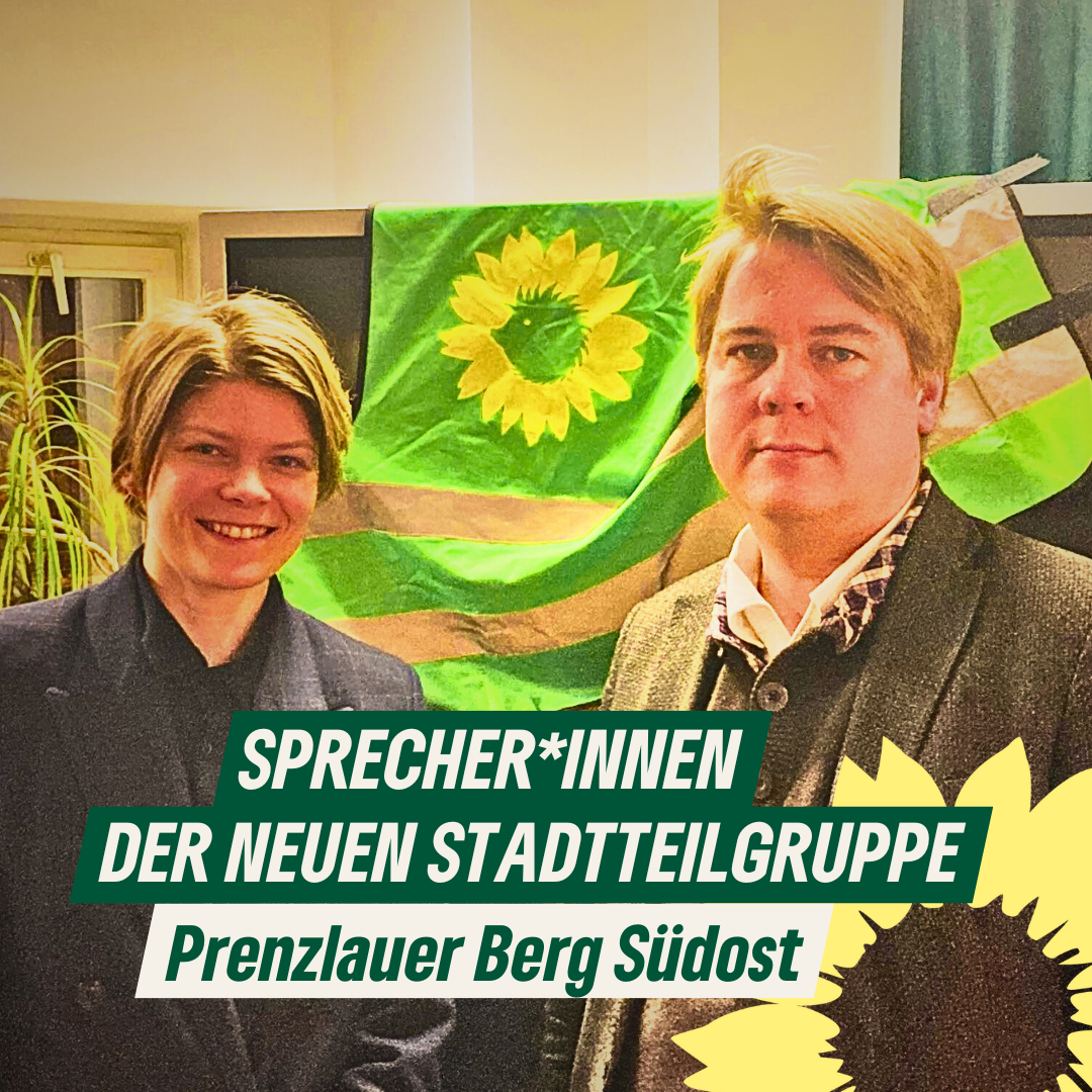 Mitten im Wahlkampf für die Wiederholungswahl zum Bundestag wurden im Osten des Prenzlauer Berg zwei neue Stadtteilgruppen gegründet: Mitglieder und Interessierte aus dem Südosten des Prenzlauer Berg – mit der Grünen Stadt, dem Bötzowviertel, dem Velodrom und dem Gebiet Storkower Straße – trafen sich am 17. Januar zur Gründungsversammlung ihrer Stadtteilgruppe. Ingo Greinert und Britta Kistenich wurden zu den Sprecher*innen der Stadtteilgruppe gewählt. Herzlichen Glückwunsch!
