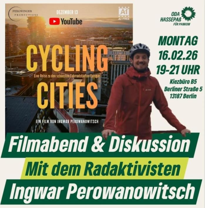 Gemeinsam sehen wir den Film Cycling Cities - Eine Reise zu den schönsten Fahrradstädten Europas und diskutieren im Anschluss über die Verkehrswende und Berlin als Fahrradstadt. Für diesen Film ist […]